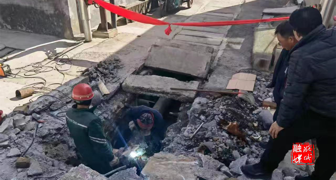 ▲店上镇常庄村组织专人维修暖气管道,确保村民供暖正常。