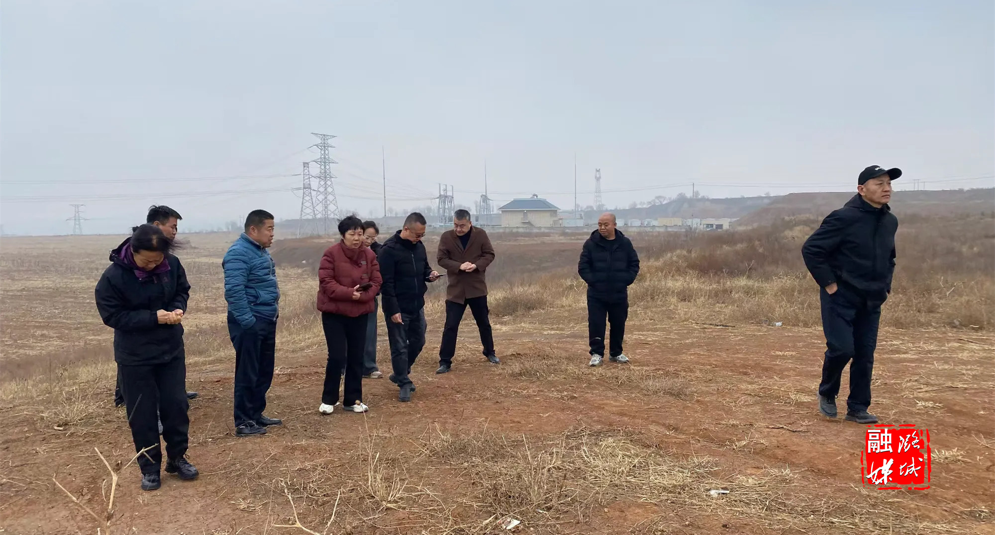 ▲辛安泉镇相关负责人到南流村推进项目用地选址工作。