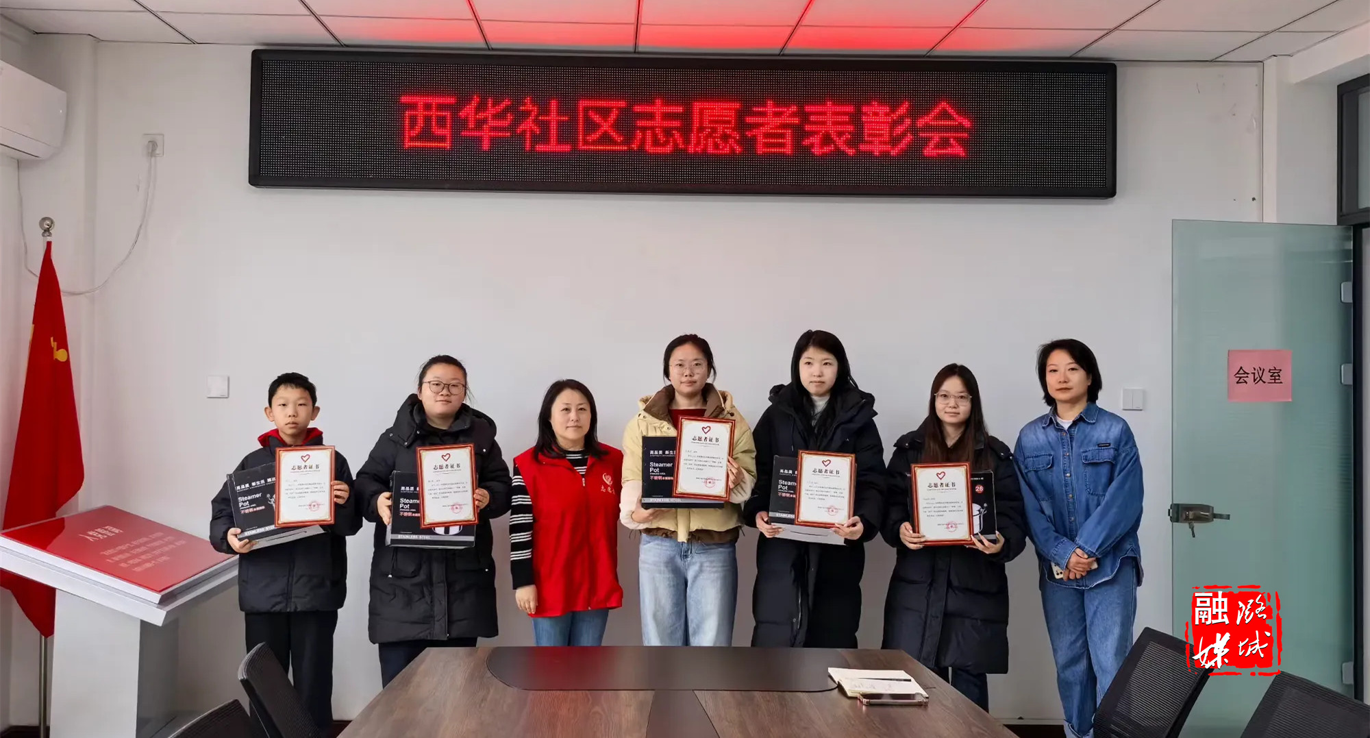 ▲潞华街道西华社区召开寒假大学生志愿者表彰会,为志愿者颁发证书与奖品。