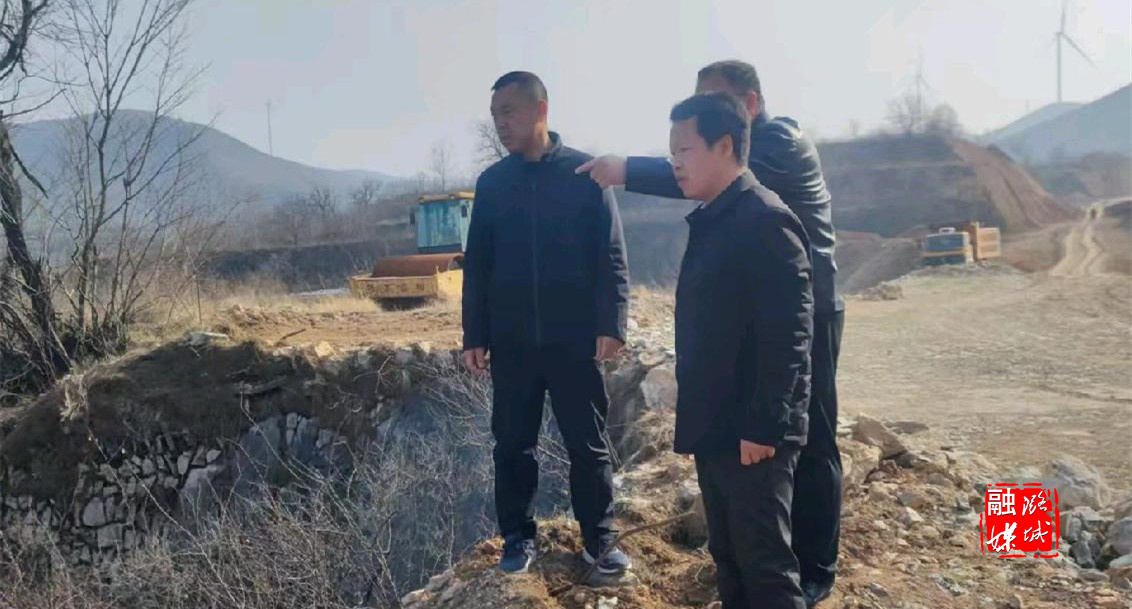 ▲辛安泉镇相关负责人同区交通运输局负责人到店辛线施工现场就项目建设相关事宜进行沟通协调。