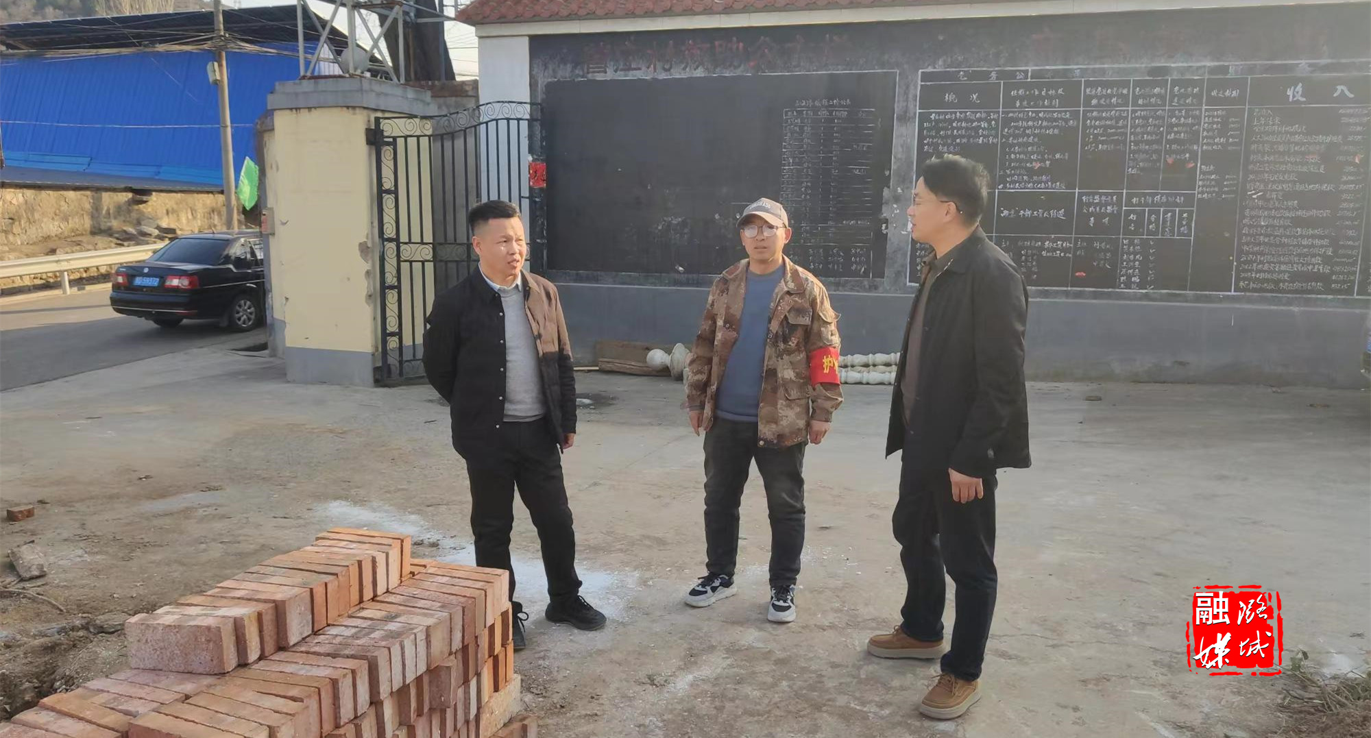 ▲辛安泉镇相关负责人到各村就项目建设情况进行查看。