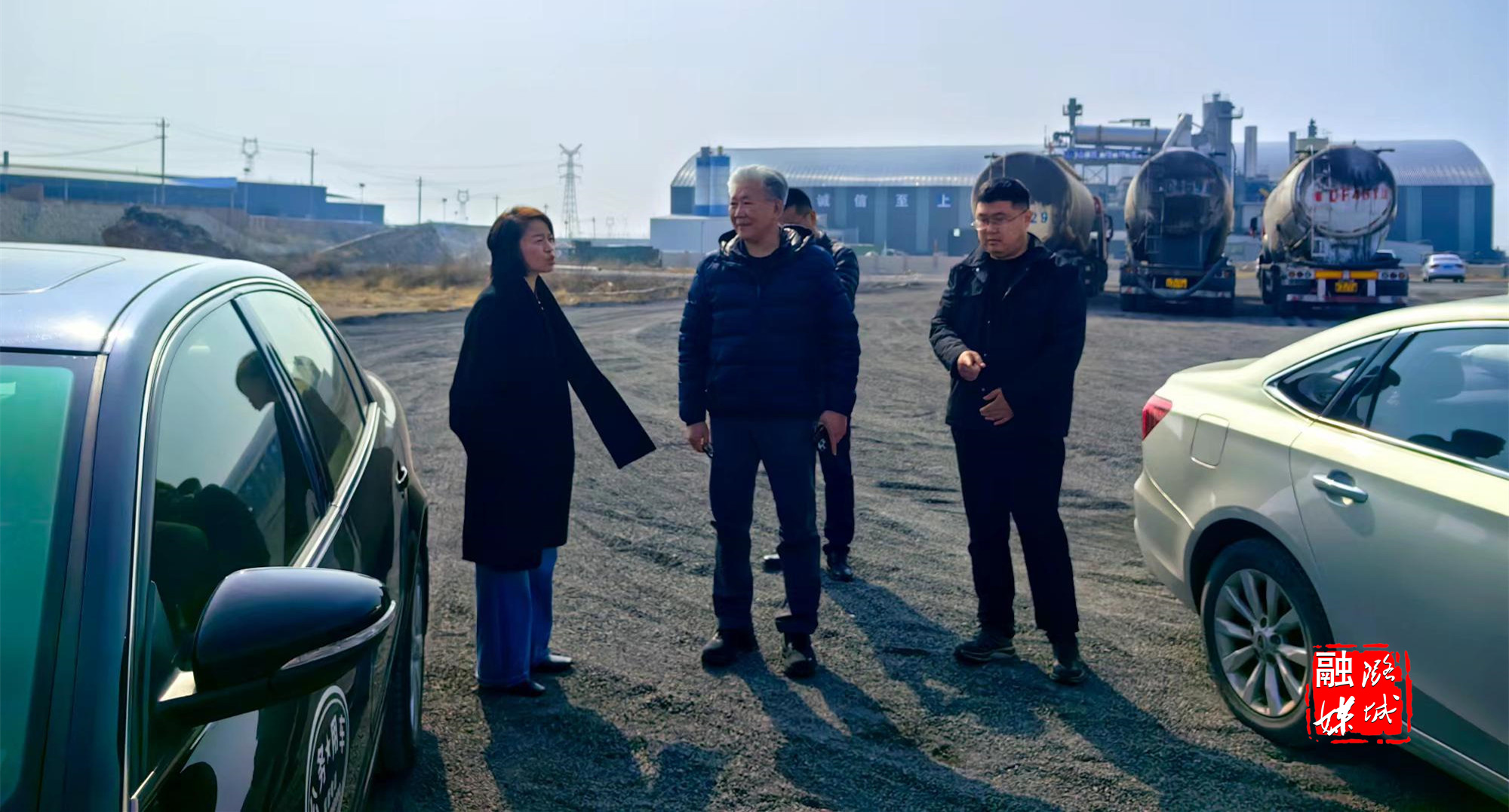 ▲史回镇相关负责人与山西德益科技有限公司相关负责人到小常村开展项目前期选址工作。
