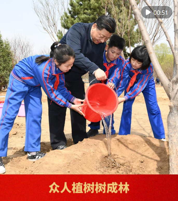 党的十八大以来,习近平总书记每年都会身体力行,参加首都义务植树活动。他强调,让我们从自己、从现在做起,把接力棒一棒一棒传下去。