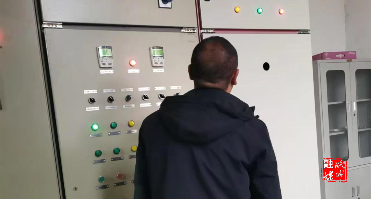 ▲史回镇朱家川村工作人员到换热站实地查看设备运行情况。