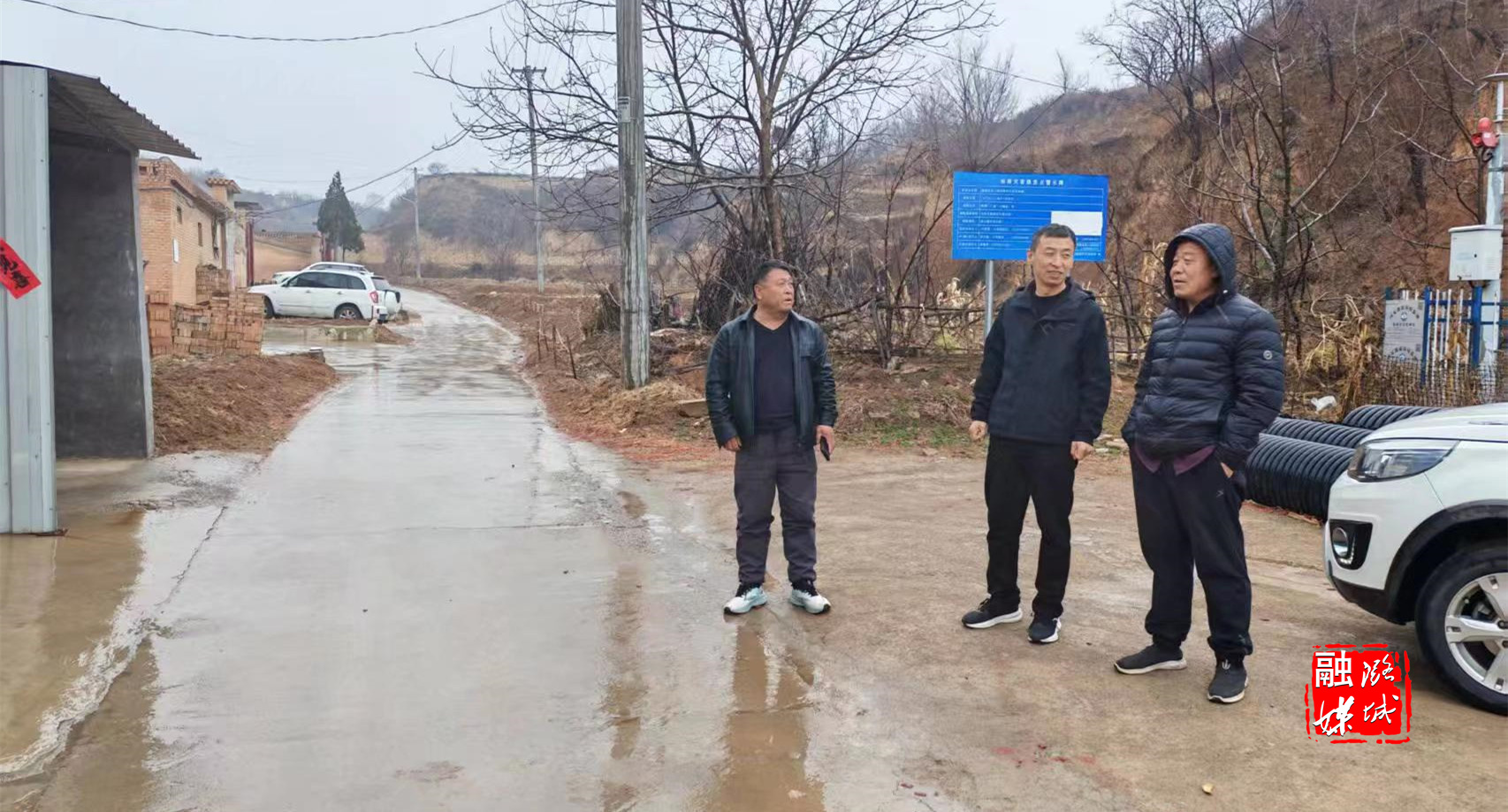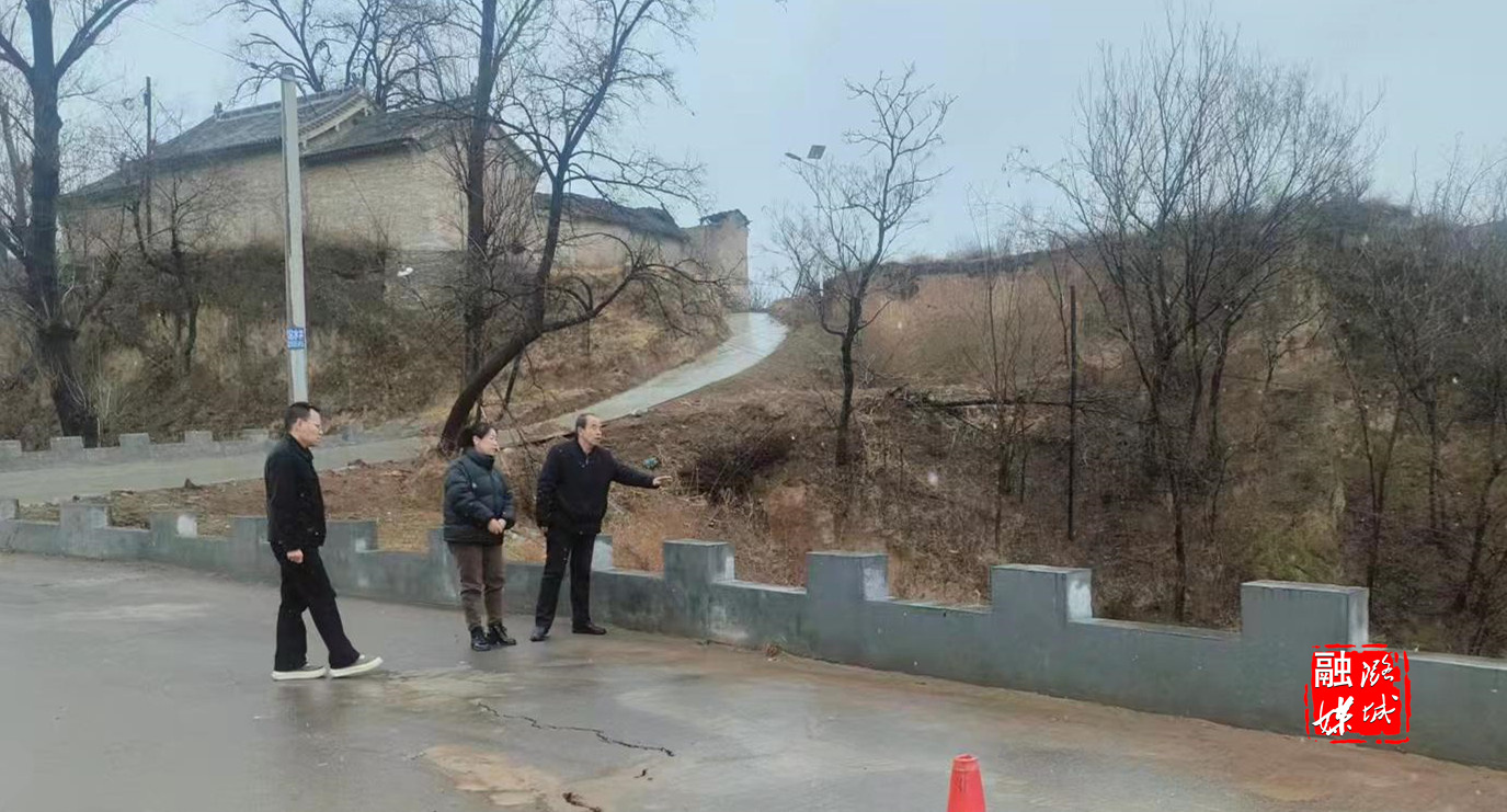 ▲微子镇工作人员在冯村查看道路安全情况。
