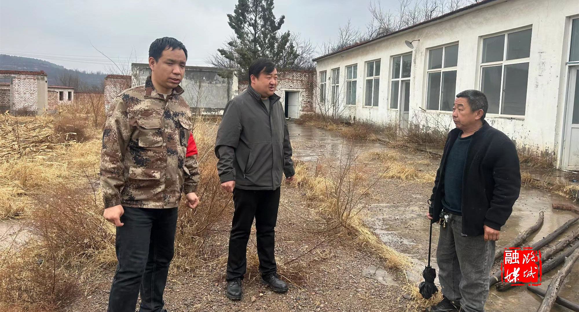 ▲店上镇工作人员到邱壁村排查安全隐患情况。