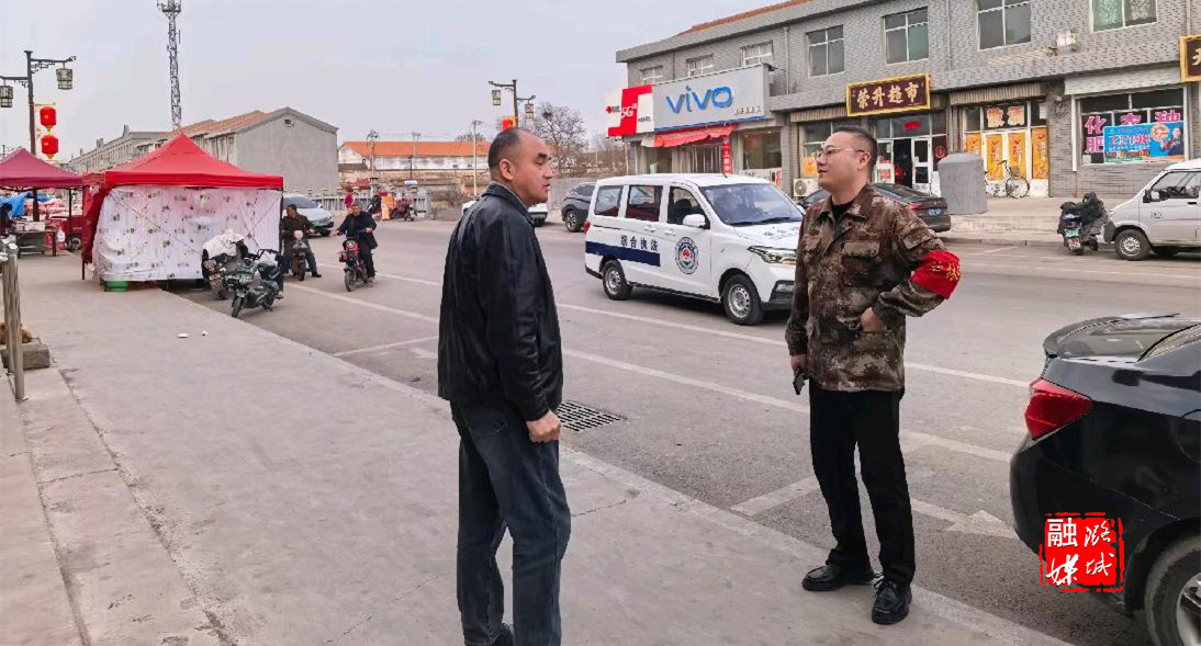 ▲微子镇相关负责人在镇区主街道指导车辆规范停放。