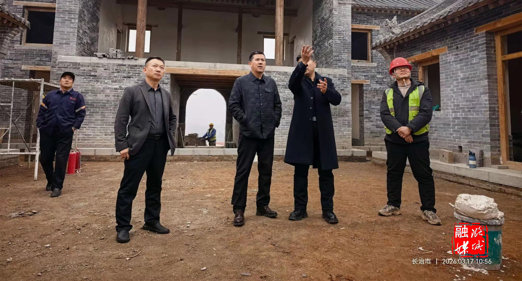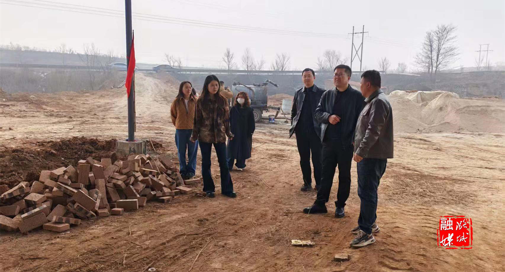 ▲黄牛蹄乡负责人到李庄焱森建材查看项目建设及安全环保情况。
