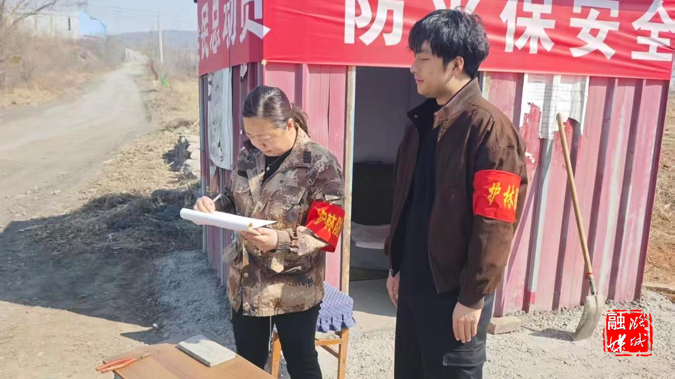 ▲辛安泉镇相关负责人到各村督导森林防火工作。