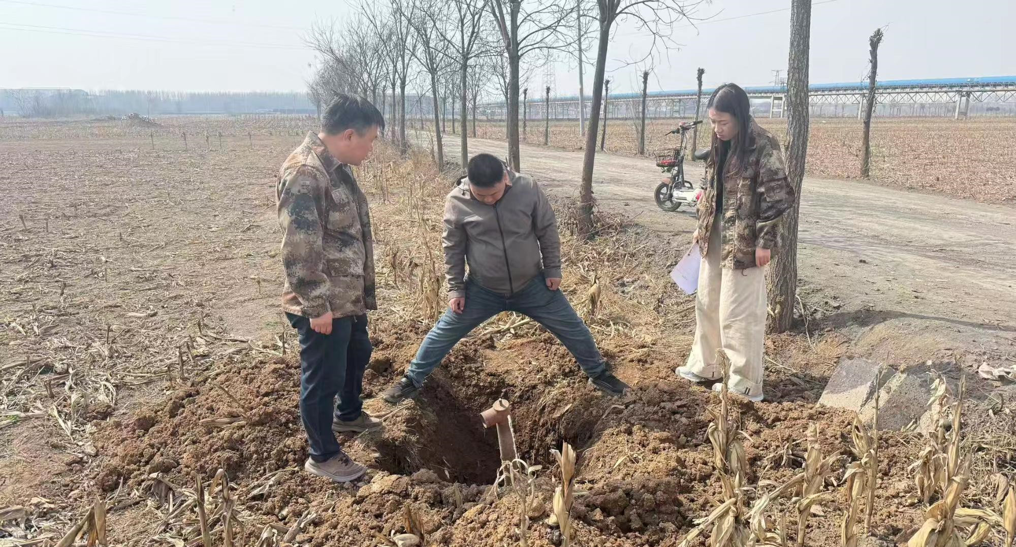 ▲史回镇相关负责人到小沟村、杨家庄等村实地查看高标准农田设施管护情况。