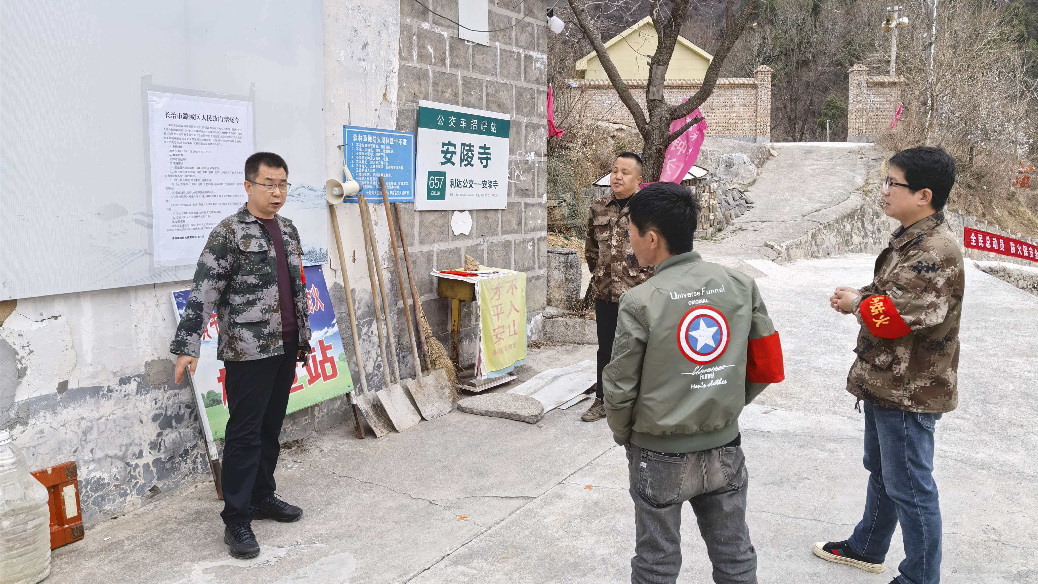 ▲辛安泉镇相关负责人到石梁村就基层党建、森林防火、环境卫生整治等近期重点工作进行安排部署。