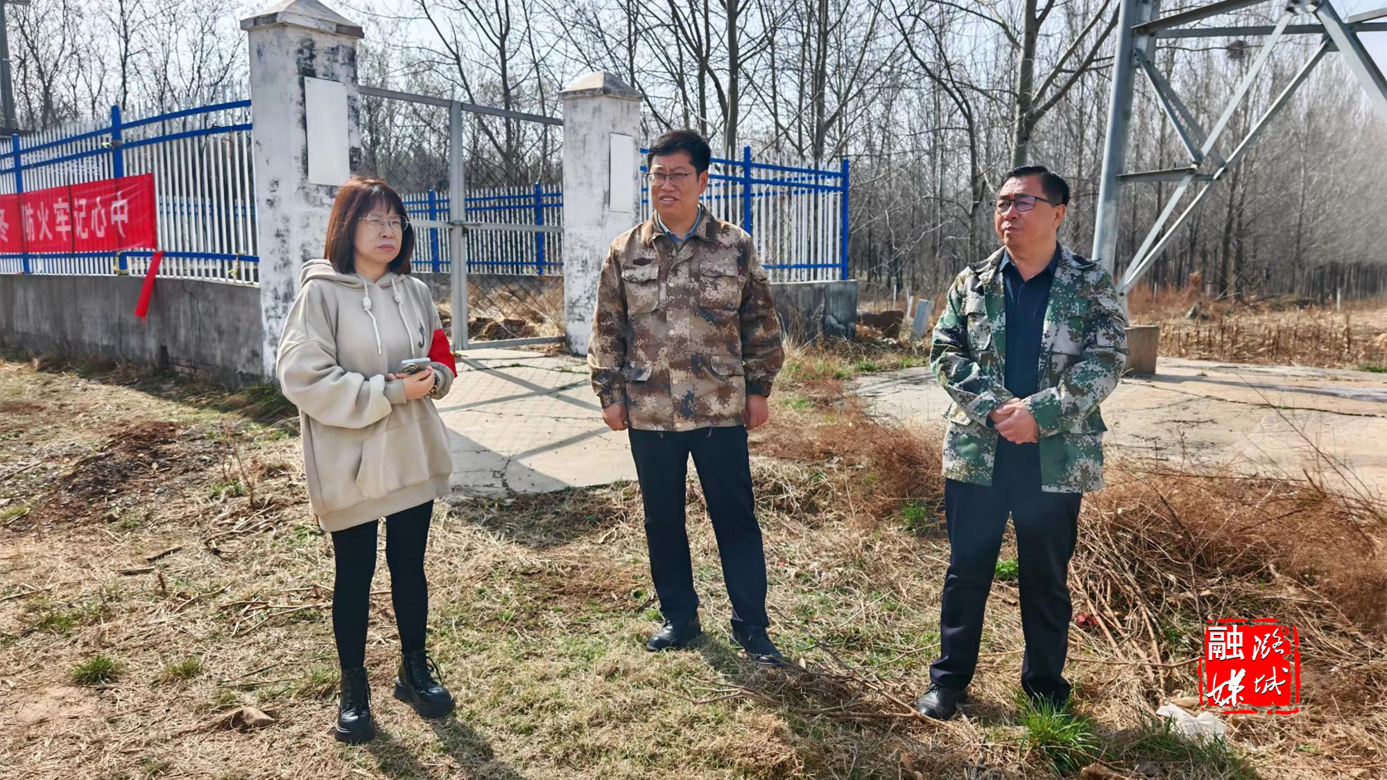 ▲微子镇工作人员在西靳村、王都庄村查看森林防火工作开展情况。