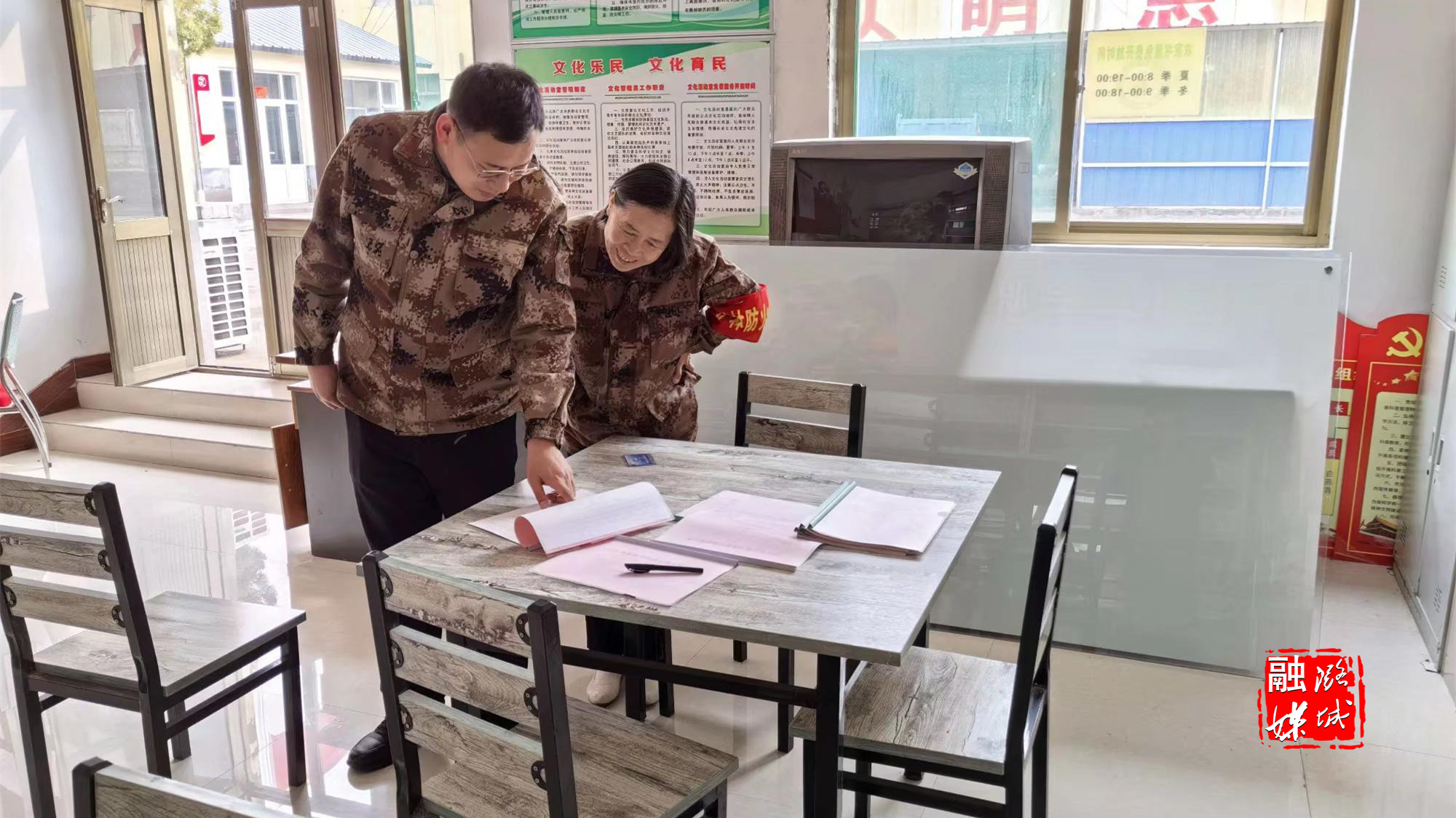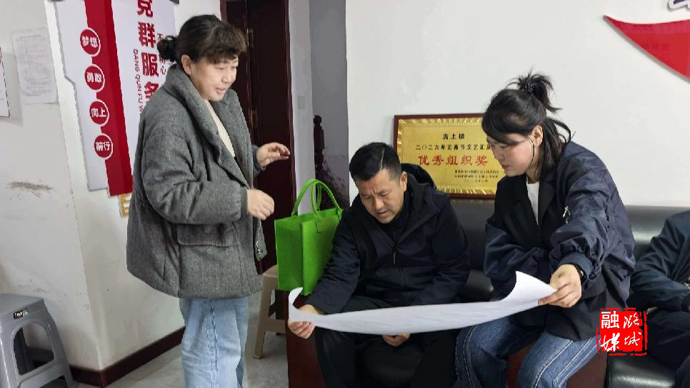 ▲店上镇申庄村工作人员就新村项目进行沟通交流。