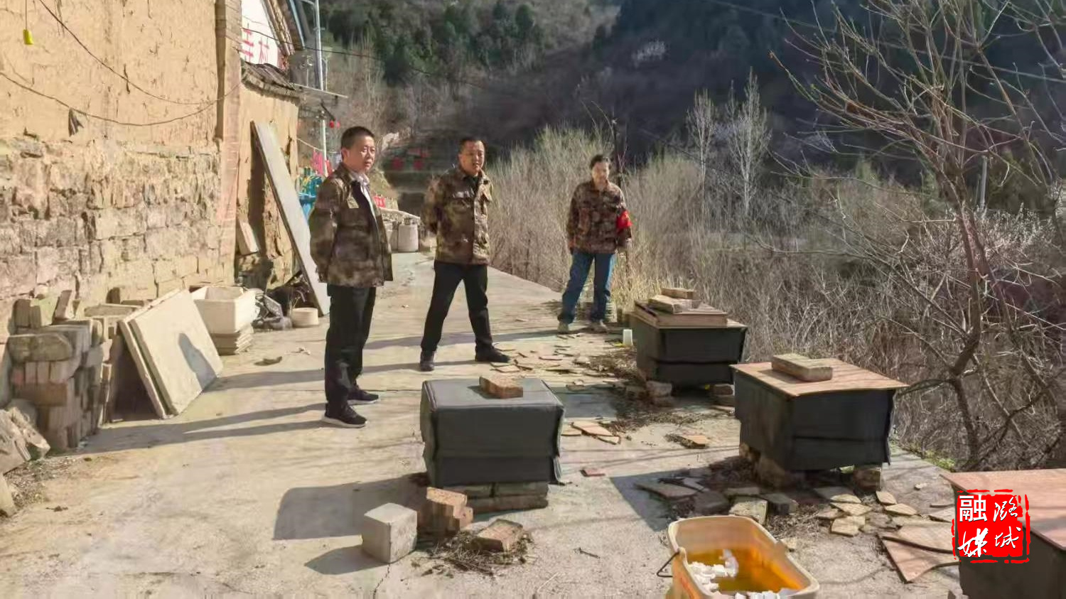 ★3月31日,黄牛蹄乡负责人到安陵寺查看中华蜂项目建设进展。