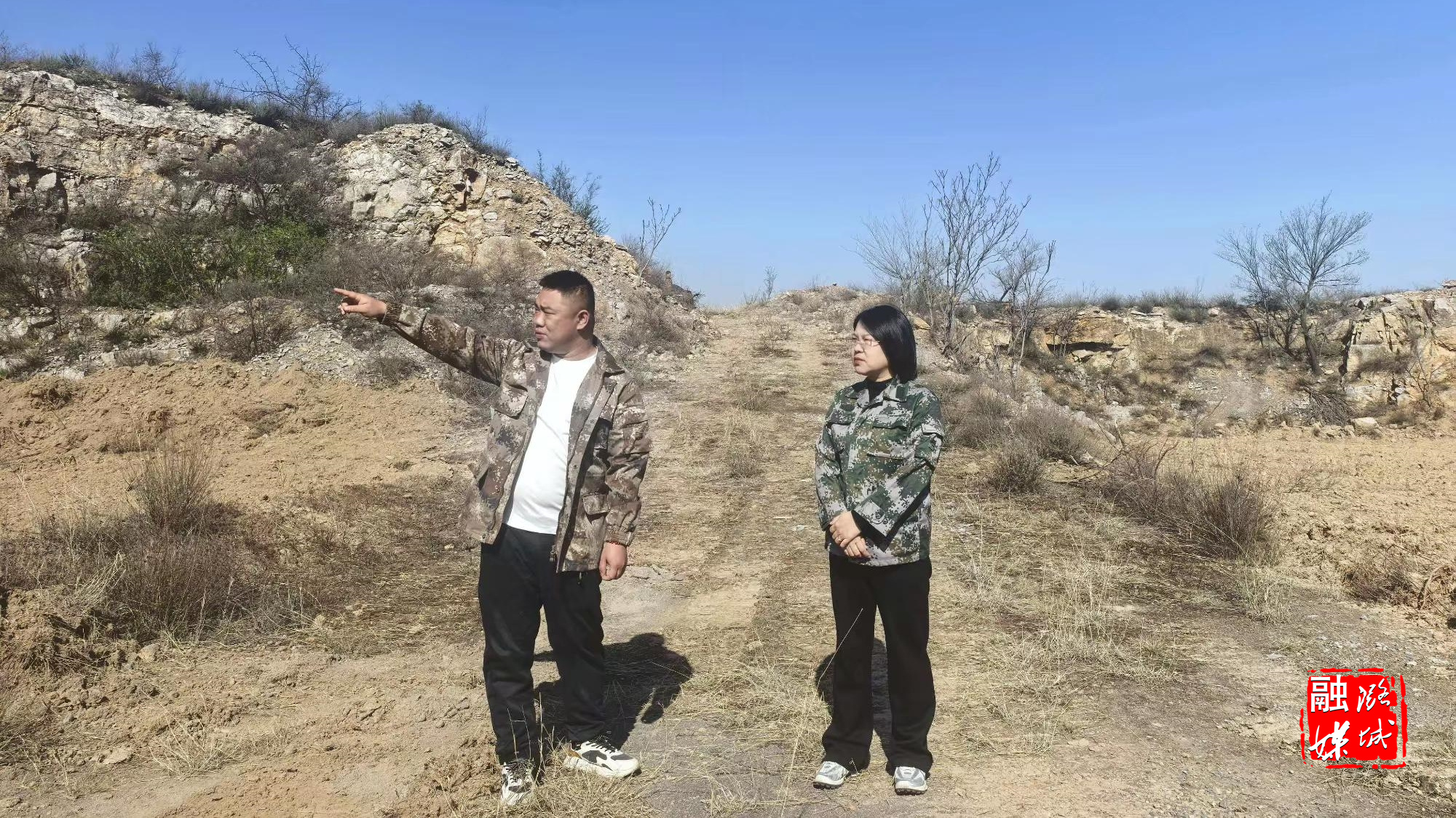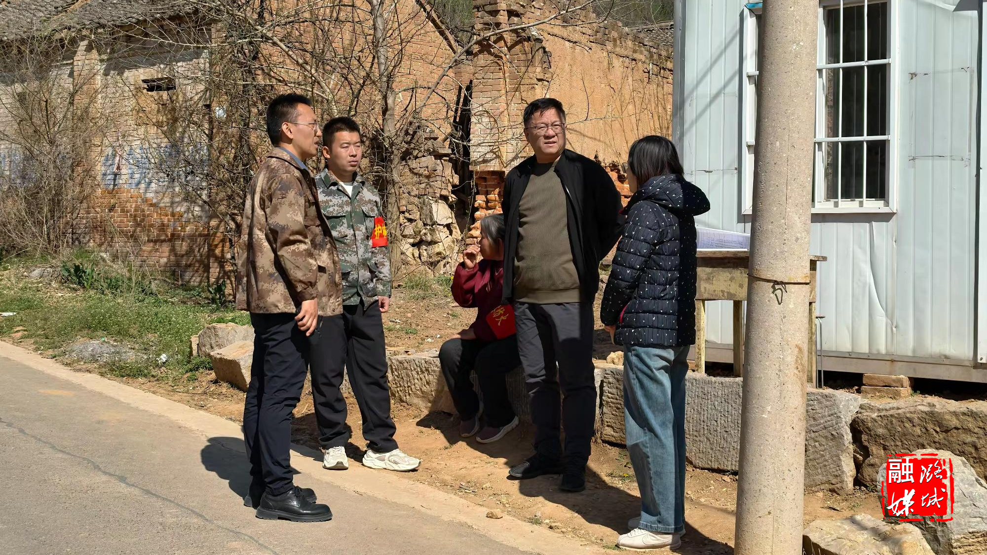 ★4月6日,成家川街道相关负责人在下社村查看蓄水池项目建设进度。