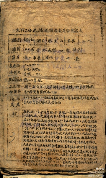 图为潞城区档案馆珍藏的太行二分区武委会潞城县杀敌英雄登记表
