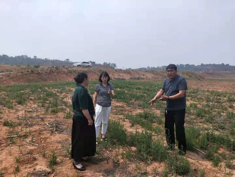 ▲6月10日,史回镇负责人到任和村指导有机旱作中药材规范化种植,实地查看柴胡管护情况。