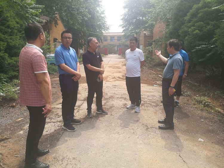 ▲6月10日,区教育局与店上镇负责人到北村中学就项目建设进行考察调研。