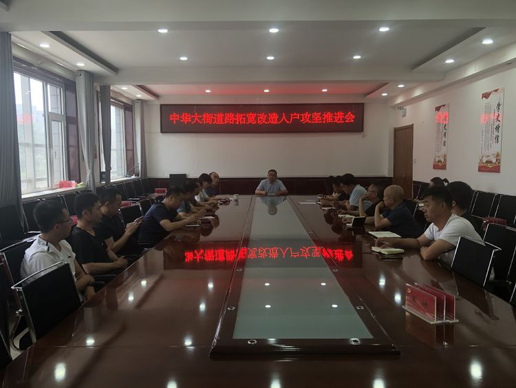 ▲6月10日,潞华街道负责人主持召开中华街拓宽改造入户推进会。相关村的包村包片干部参加会议。