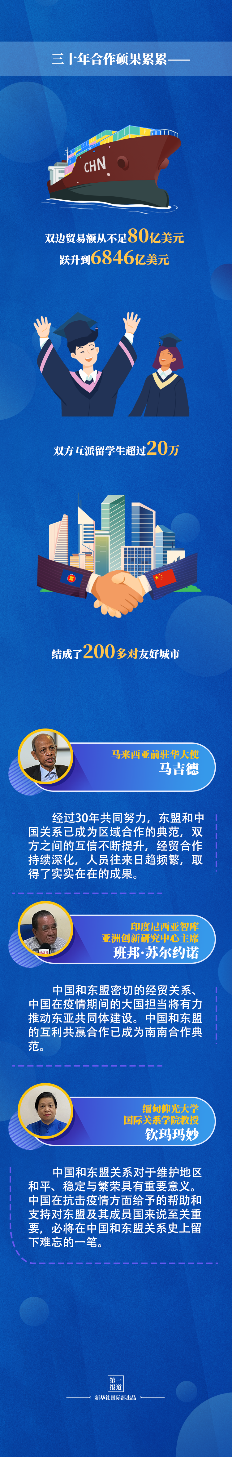 2021年,中国和东盟建立对话关系踏入“而立之年”。30年间,中国东盟携手前行,关系实现跨越式发展,展现出蓬勃生机。