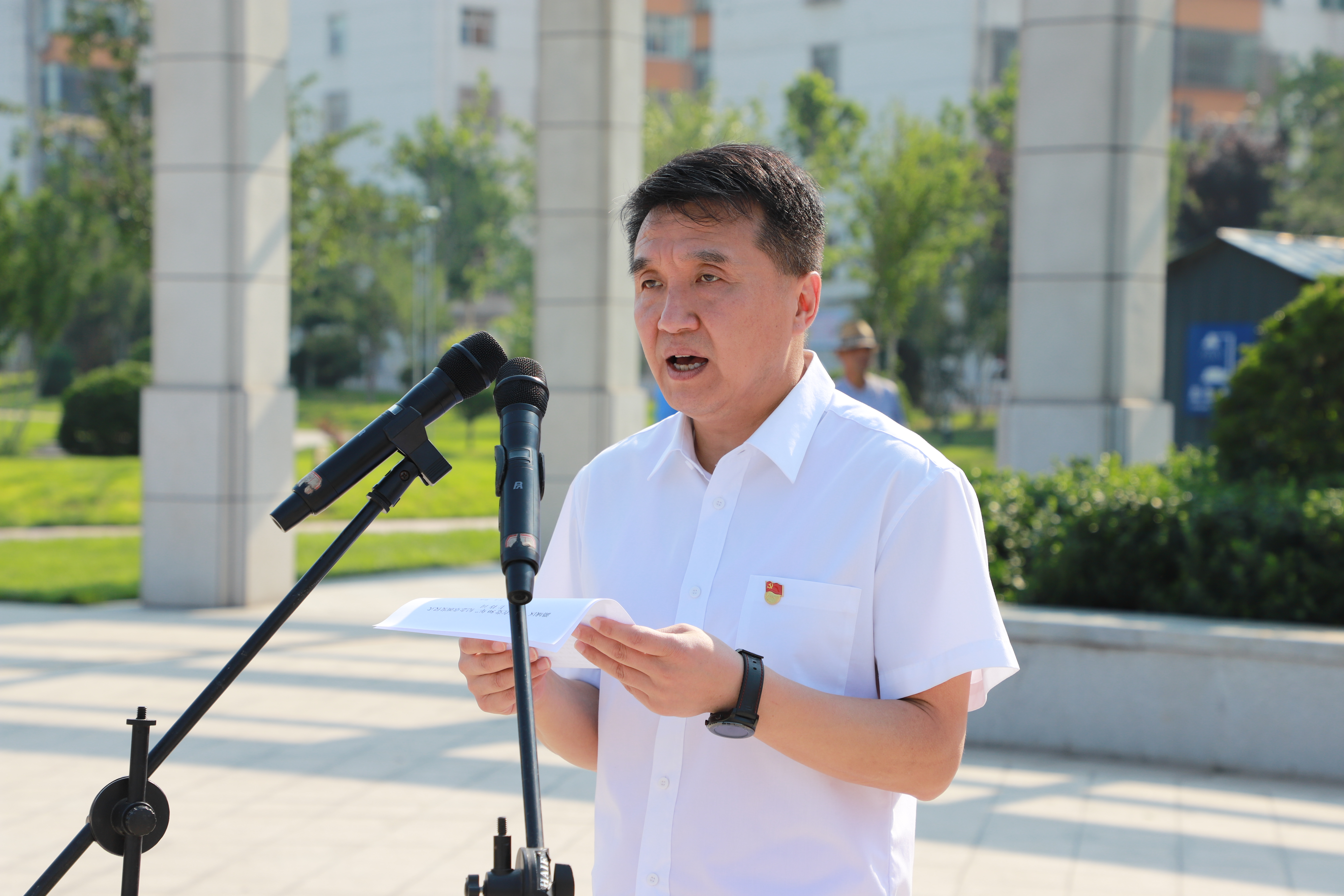 日上午,我区在世纪广场举行“光荣在党