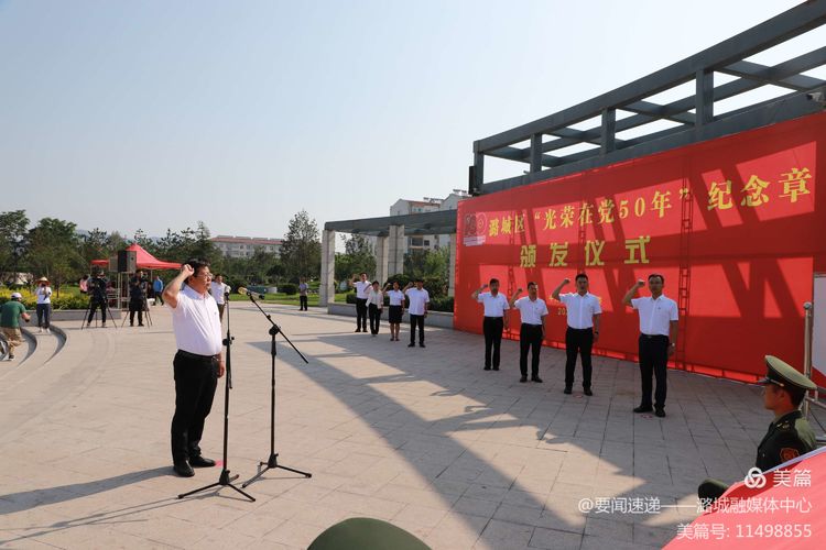 在中国共产党成立100周年之际,6月23日上午,我区在世纪广场举行“光荣在党50年”纪念章颁发仪式。区委书记秦苏良出席并讲话。区委副书记、区长郭强主持仪式。区领导翟勇、牛浩刚、曹枫、李明、李晓峰、张学良、冯立功、李振亚出席。“光荣在党50年”老党员代表,各系统党(工)委、党总支书记,各乡镇(街道)党(工)委书记,新发展党员代表参加仪式。