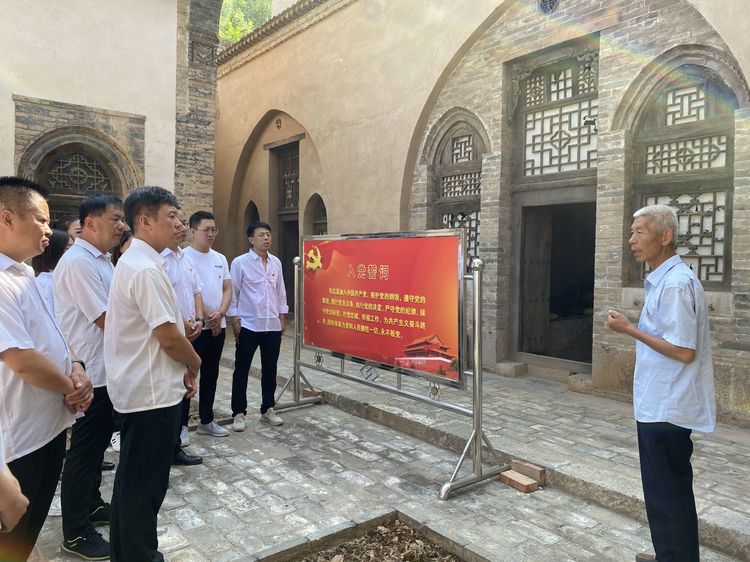 ▲6月25日,黄牛蹄乡负责人组织带领新入党党员到土脚村抗日民主政府旧址开展集中宣誓,倾听老党员王红旗讲解红色故事,并召开座谈会。