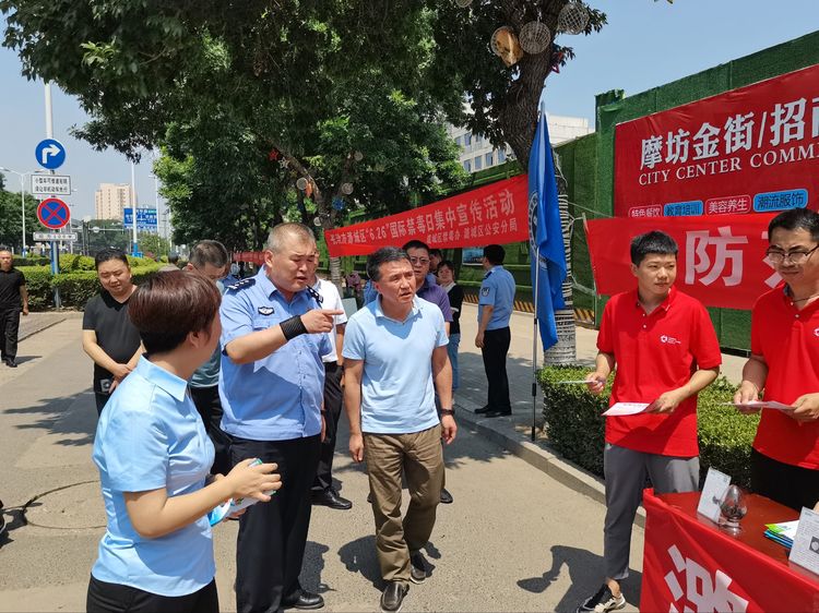 6月26日上午,我区在中华大街举行“6·26”国际禁毒日集中宣传活动。区领导秦苏良、郭强、李振亚、杨忠民、武鹰、靳忠玲参加活动。