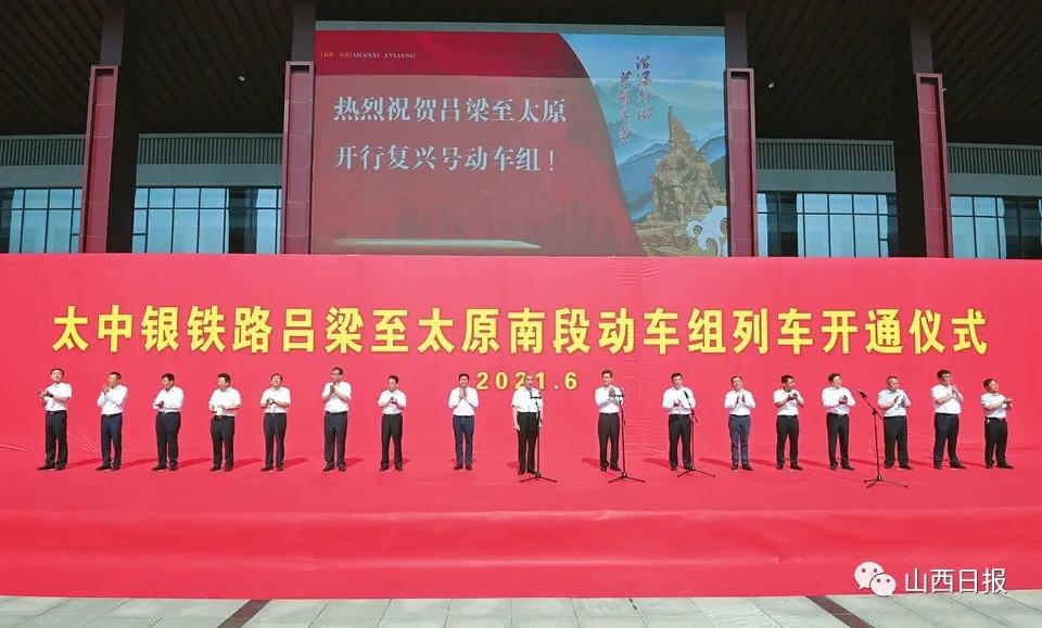 山西日报记者张巨峰 陈俊琦报道 在庆祝中国共产党成立100周年之际,我省客运通道建设再次收获新的重要成果。6月26日上午,太中银铁路吕梁至太原南段动车组列车开通仪式在吕梁火车站举行。省委书记、省人大常委会主任林武出席并宣布开通。省委副书记、省长蓝佛安讲话。省委常委、秘书长李凤岐出席。副省长韦韬主持。