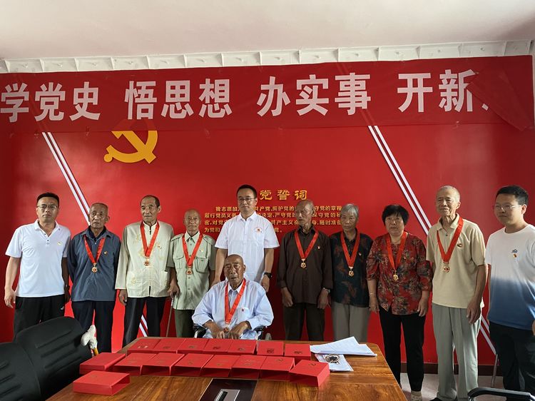 ▲7月1日,黄牛蹄乡负责人到黄牛蹄村参加七一建党100周年庆祝活动,并为党龄在五十年以上老党员颁发“光荣在党五十年”勋章。