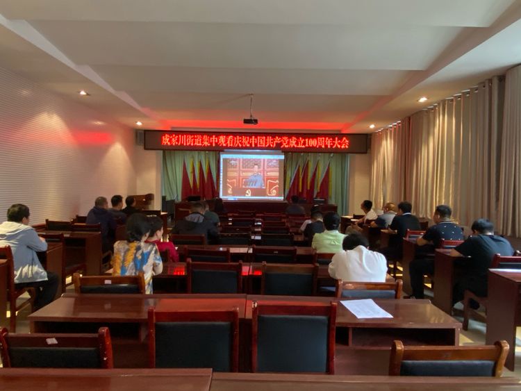 ▲7月1日,成家川街道办事处组织机关干部集中观看庆祝中国共产党成立100周年大会实况。