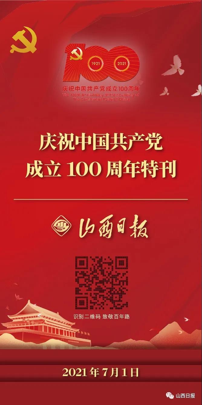 百年华诞,三晋欢腾 诗画共祝,歌舞齐颂 3400万人民 用行动印证着对祖国和党的热爱 100年间,风雨兼程 100年里,沧桑巨变 改变的是人民群众的生活 不变的是中国共产党人的初心和使命 7月1日,山西日报推出 “奋斗百年路 启航新征程”特刊 识别二维码 致敬百年路