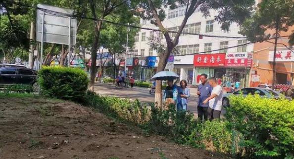 ▲7月12日下午,区园林环卫中心相关负责人到府东北路实地查看电缆入地绿地恢复情况。
