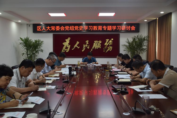 ▲7月12日上午,区人大常委会党组书记、主任翟勇主持召开党史学习教育专题学习研讨会,深入学习贯彻习近平总书记在庆祝中国共产党成立100周年大会上的重要讲话精神。党组成员围绕百年伟大成就、形成的建党精神、铸就的宝贵经验、肩负的任务使命,紧密结合思想和工作实际,交流学习体会。机关全体干部参加会议。
