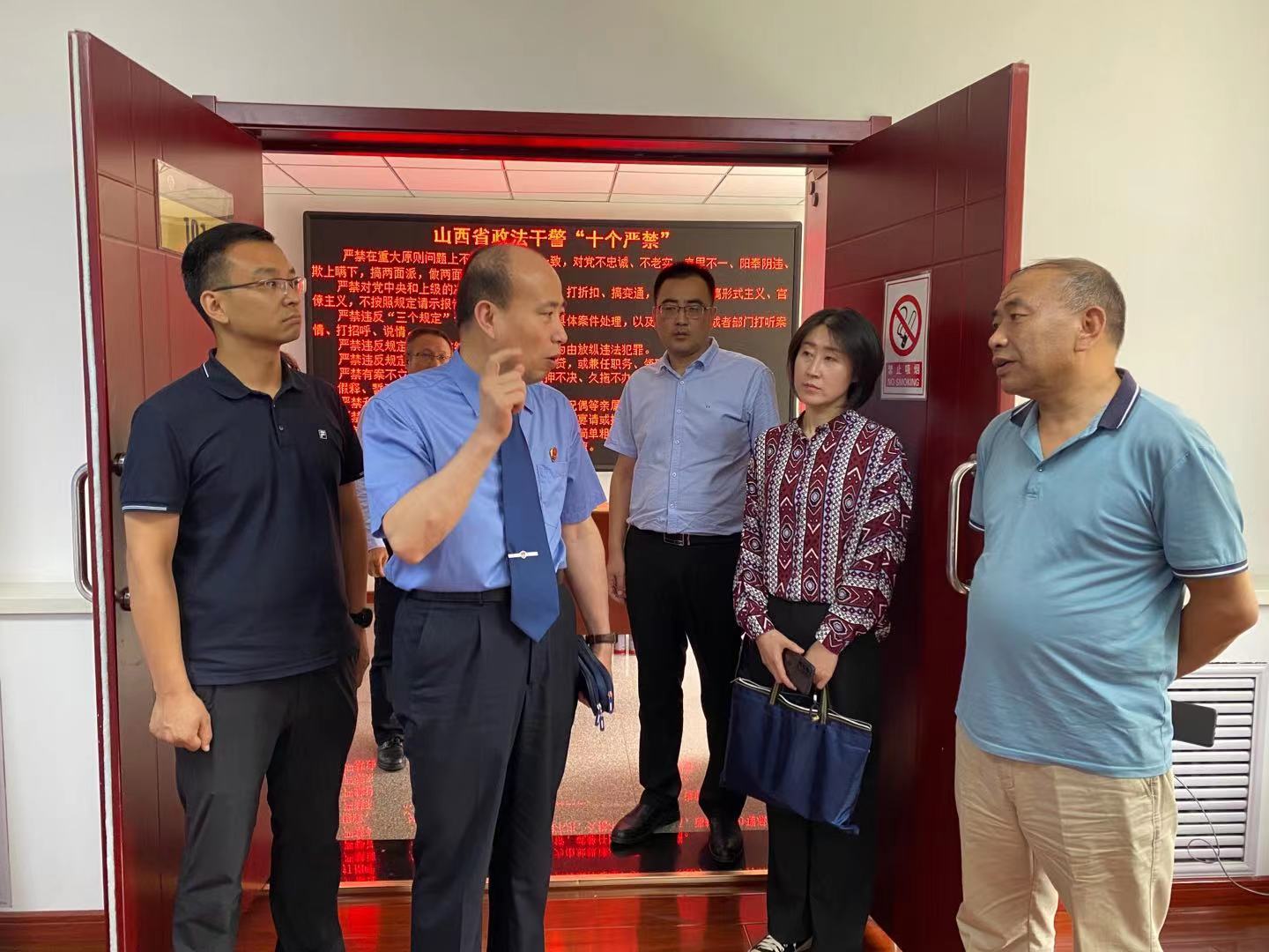 ▲7月12日,由市政法队伍教育整顿第五督导组组长丁书明带队的督导组对我区政法各单位教育整顿“回头看”工作开展情况进行督导。区委常委、政法委书记李振亚,副区长、区公安分局局长武鹰,区人民法院院长史高峰,区人民检察院检察长郜晓军参加并陪同督导检查。