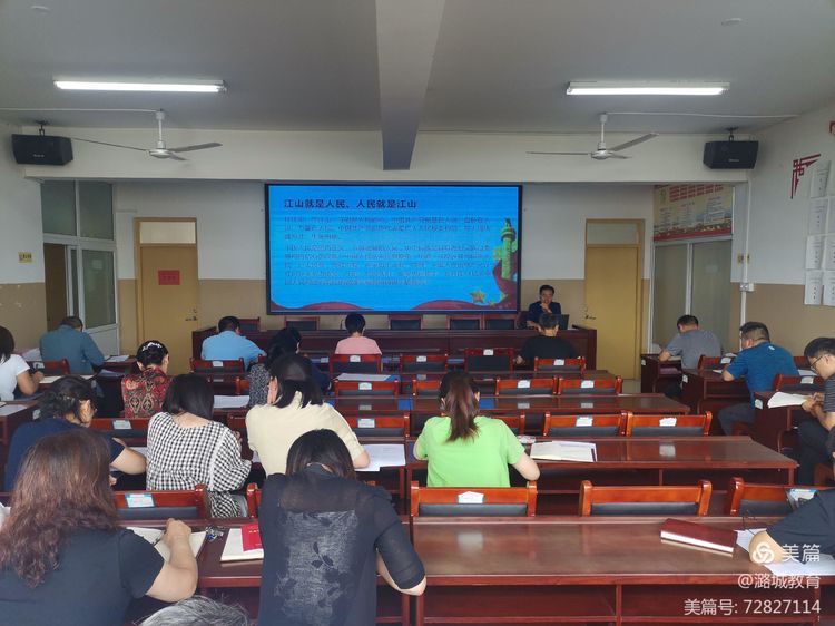 ▲7月12日上午,区教育局组织机关全体人员在四楼会议室,学习习近平总书记在庆祝中国共产党成立100周年大会上的讲话。
