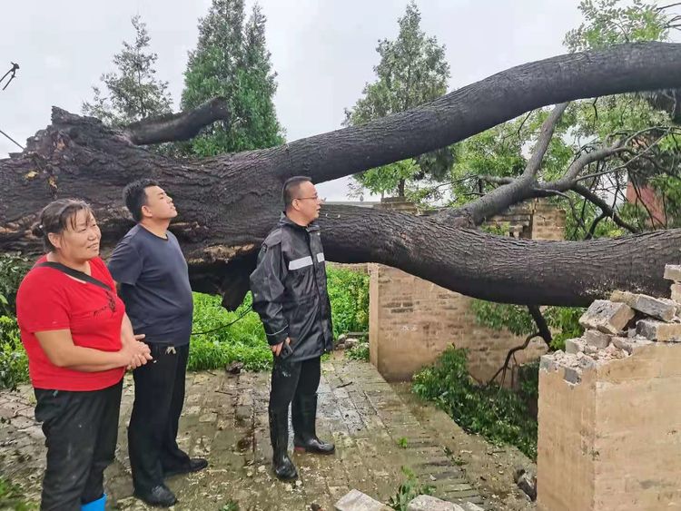 ▲7月21日,区应急管理局相关负责人深入到店上镇下栗村同支村两委查看该村房屋受损户情况,协调受灾户安置转移相关工作。