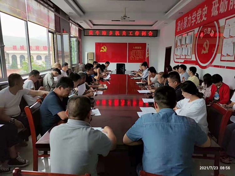 ▲7月23日,黄牛蹄乡召开机关例会,对疫苗接种、防汛、交通安全、地灾治理等工作进行安排部署。