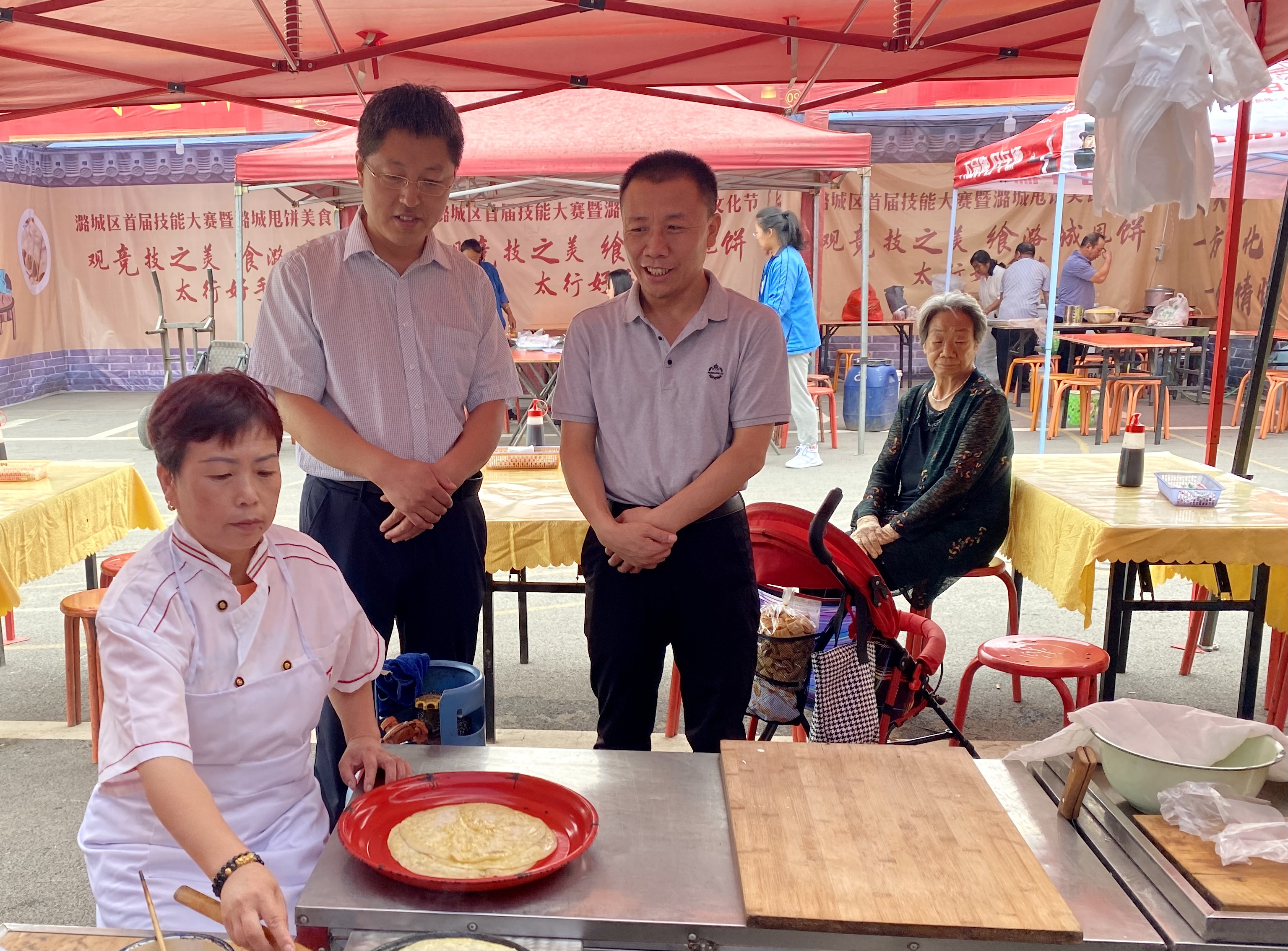 潞城区首届技能大赛暨潞城甩饼美食文化节即将开幕,金威购物广场、潞城职业高中和长治市大健康公共服务基地等赛点各项准备工作有序进行。7月28日上午,副区长杜进才来到金威购物广场,现场查看“潞城甩饼”展演比赛场地的布置进程,详细询问参赛选手准备情况。