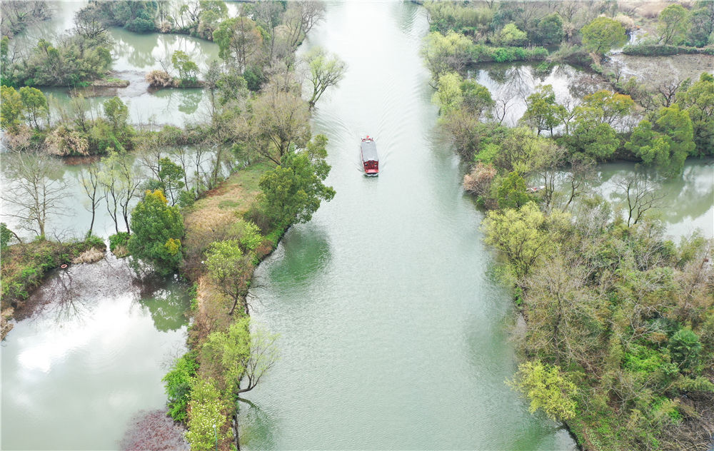 浙江杭州西溪湿地水道(2021年3月2日摄,无人机照片)。新华社记者 翁忻旸 摄