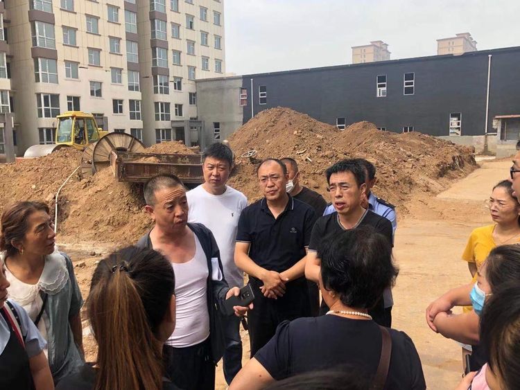 ▲8月5日,区人大常委会副主任韩旭军在裕安幸福城项目协调解决业主诉求。