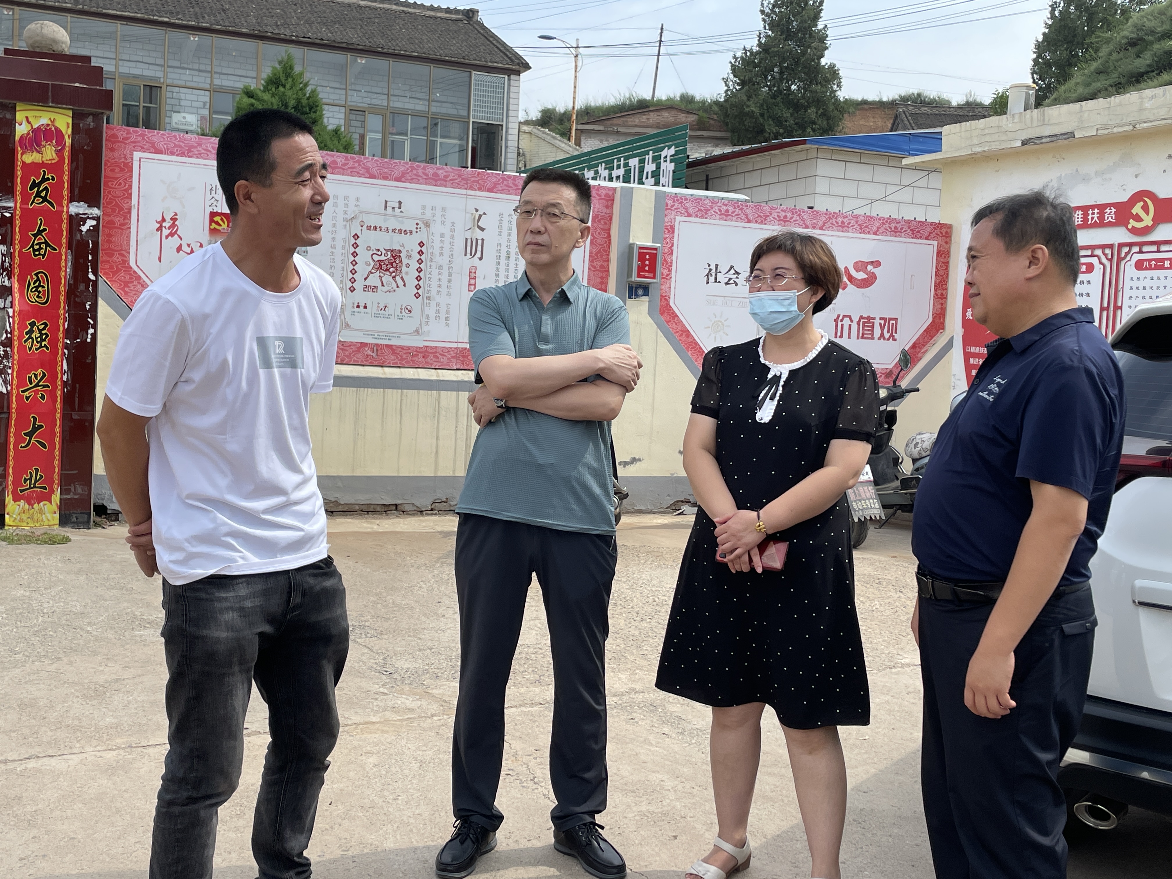 ▲8月11日,辛安泉镇负责人与山西维康德济中药材公司负责人就项目建设工作进行交流。