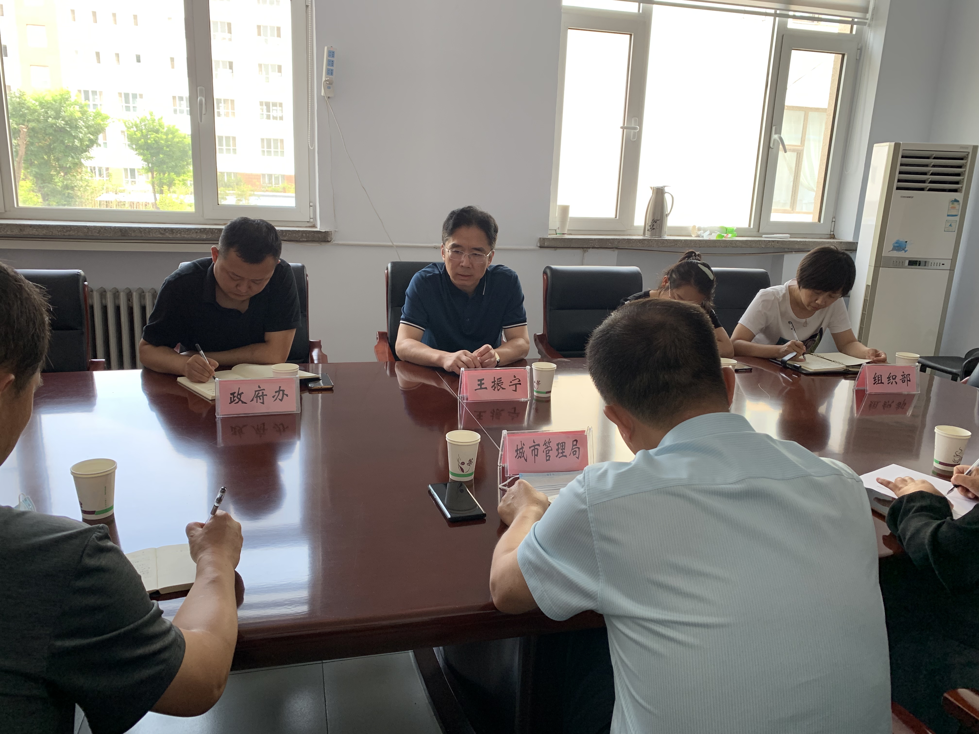 ▲8月11日上午,副区长王振宁就市容整治工作落实不力问题,约谈区城市管理综合行政执法局(筹)班子成员。