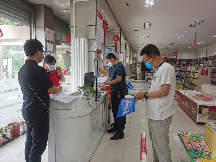 ▲8月11日,区委宣传部 、区文化执法队到新华书店、友谊书社、书宝斋书店等门店检查督导疫情防控工作。