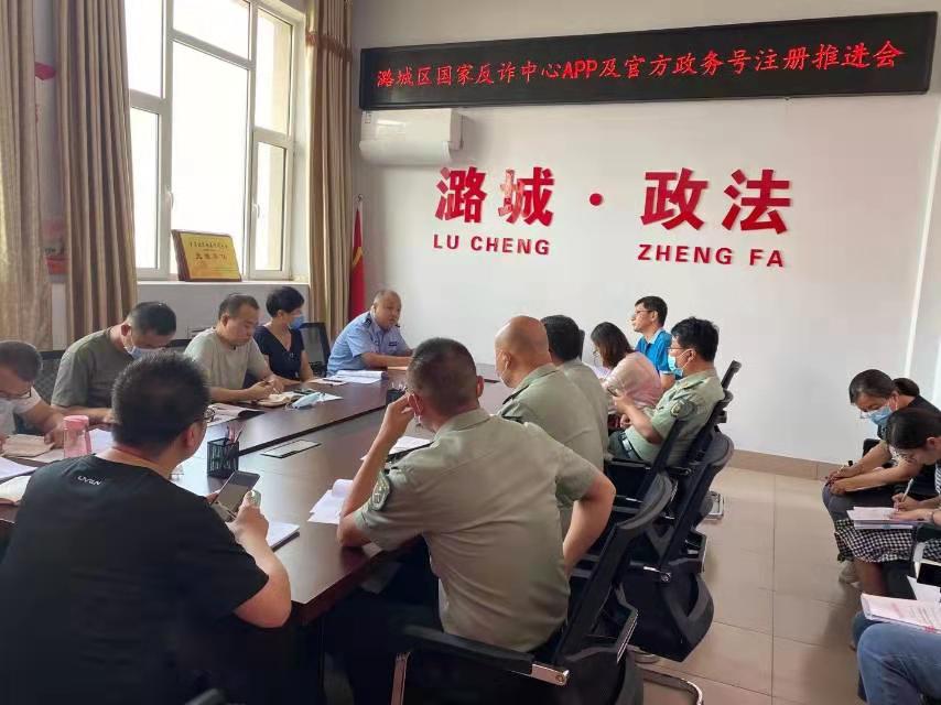 ▲8月17日,区委政法委组织召开全区“国家反诈中心”APP及官方政务号注册推进会。