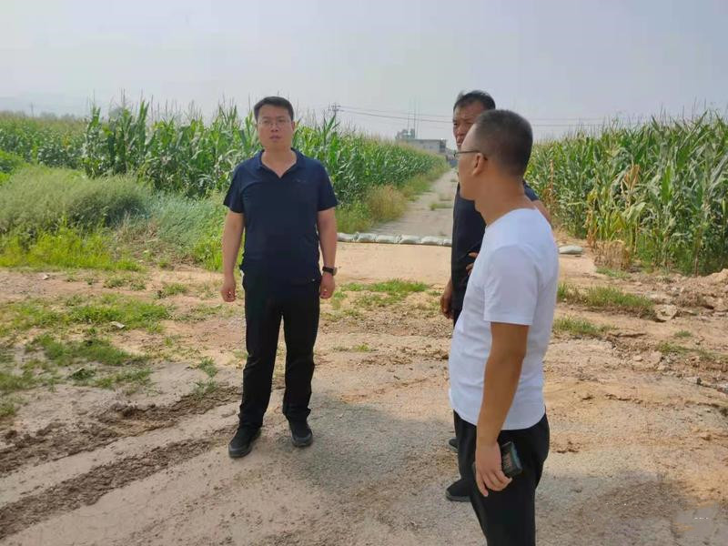 ▲8月17日,翟店街道相关负责人在翟店村实地查看田间道路情况。
