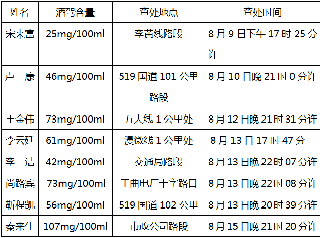 潞城交警大队对以下酒驾、醉驾的违法人员进行曝光,请广大驾驶员牢记“酒后不开车,开车不喝酒”,为家人负责、为自己负责、为社会负责,远离酒驾,珍爱生命。