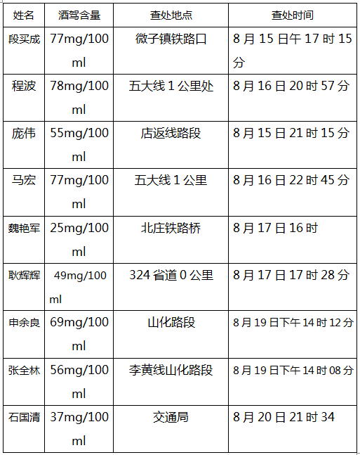 潞城交警大队对以下酒驾、醉驾的违法人员进行曝光,请广大驾驶员牢记“酒后不开车,开车不喝酒”,为家人负责、为自己负责、为社会负责,远离酒驾,珍爱生命。