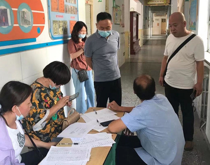 ▲8月23日,区卫健局负责人在区妇幼计生服务中心、区中医院和城关小学检查指导疫苗接种工作。
