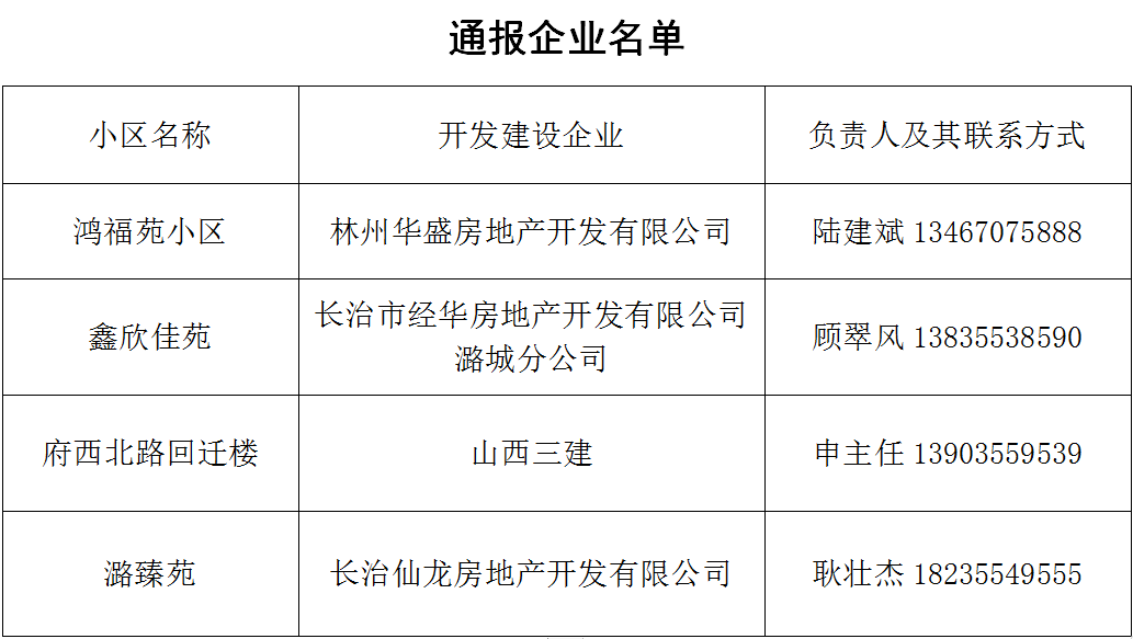 “清零行动”是省委、市委、区委在党史学习教育中开展“我为群众办实事”实践活动的一项重要内容,由纪委监委牵头主抓,上下各级、各部门高度重视,形成合力、攻坚克难,勇于担当、全力推进。在这种形势下,仍有部分房地开发产企对政府安排的事项置若罔闻、拒不配合。依据会议精神和工作需要,现对拒不配合的4家开发企业进行通报批评。